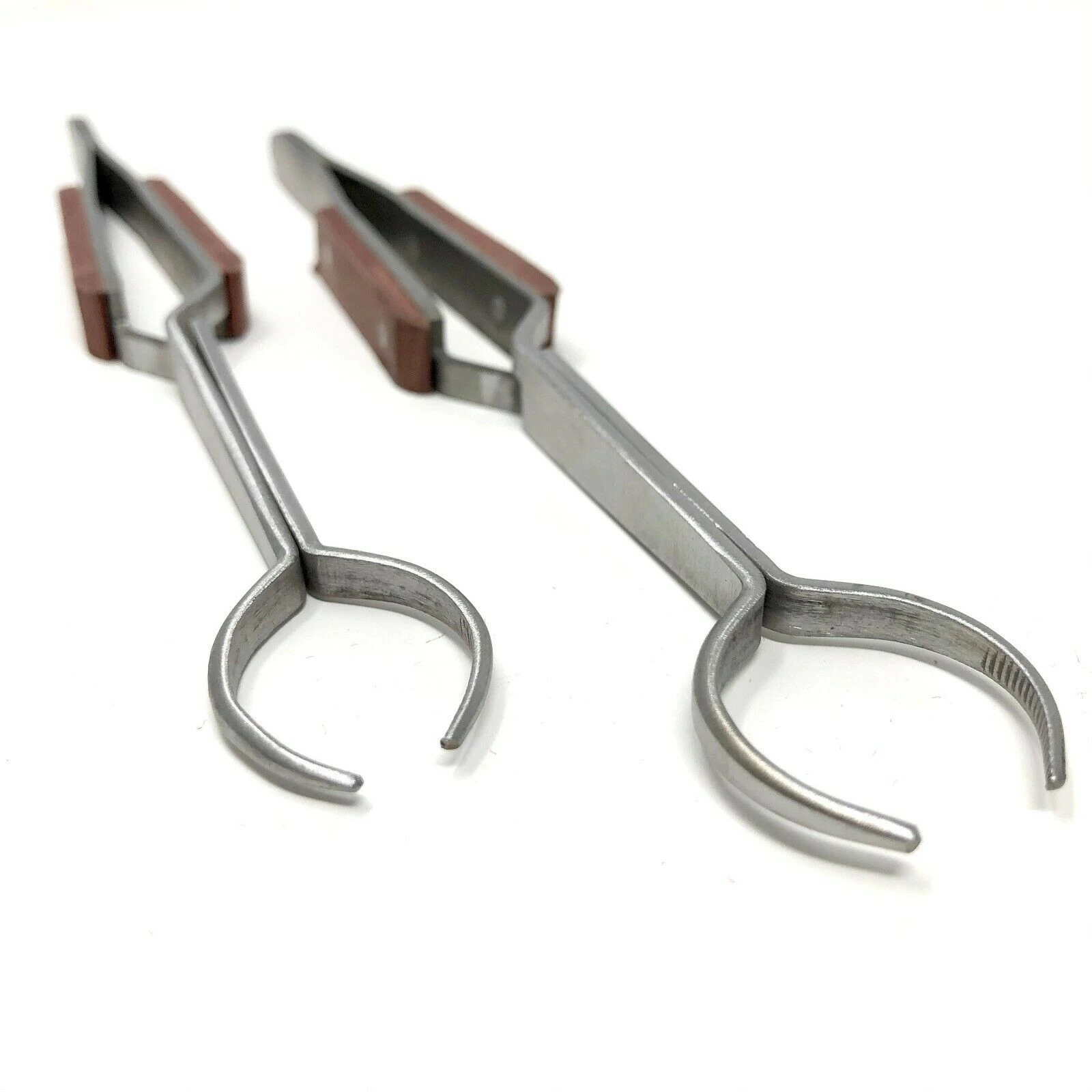 - Three 6.5″ cross lock tweezers, in a straight, curved and extra curved profile