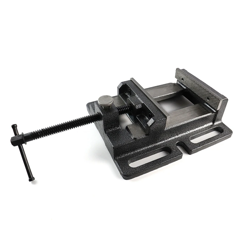 Durston 5 inch Turnable Flat Bench Vice, Made from Cast Iron with Carbon Steel Jaws that can be adjusted quickly by pushing the top button and then tightening as needed.