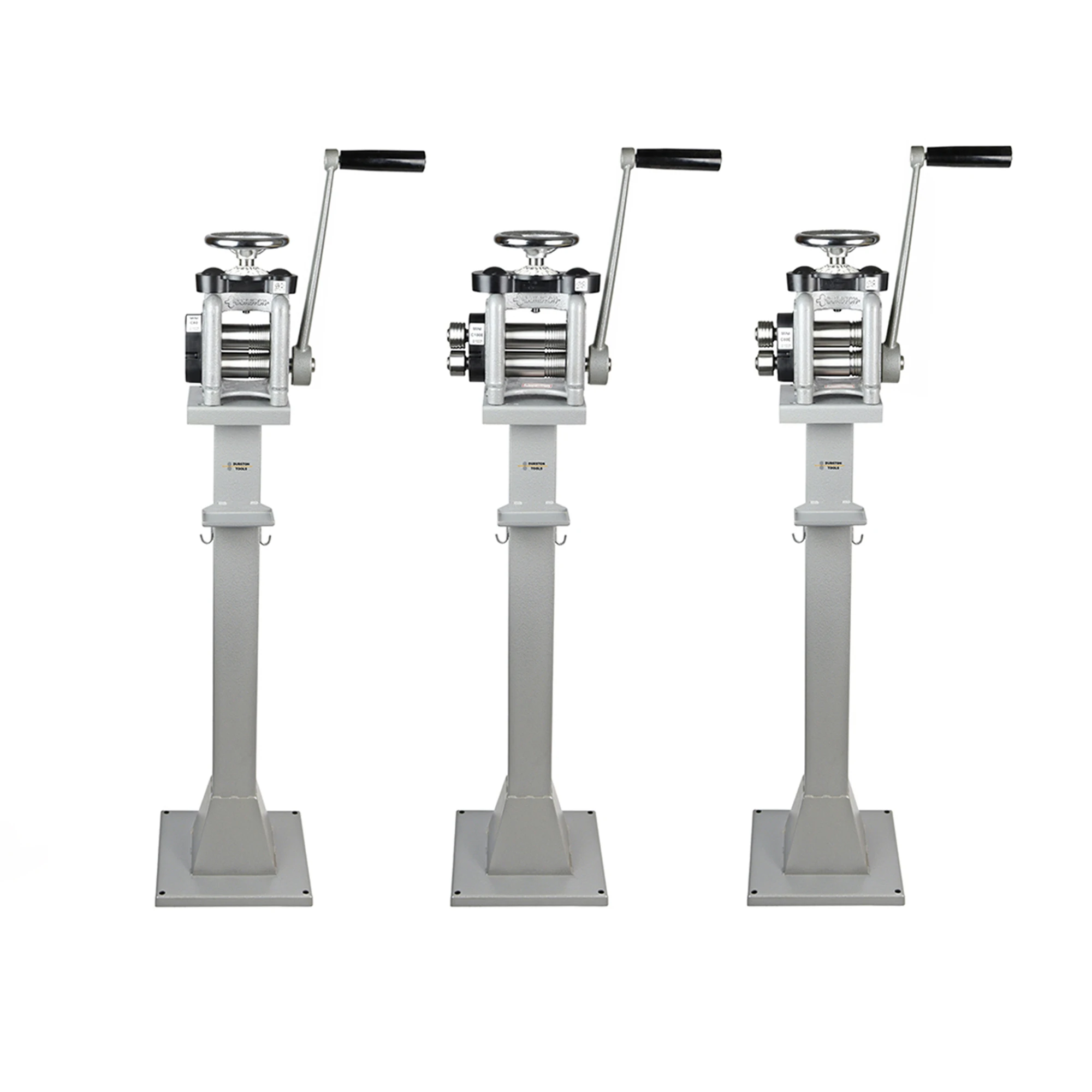 Durston Mini Stand for smaller size Rolling Mills, Designed for Durston Mini Rolling Mills, 80 and 100, Agile 50 and 70 sizes, constructed from quality powder coated steel with storage tray and hook. Secure directly to the floor using the 4 holes in the base.