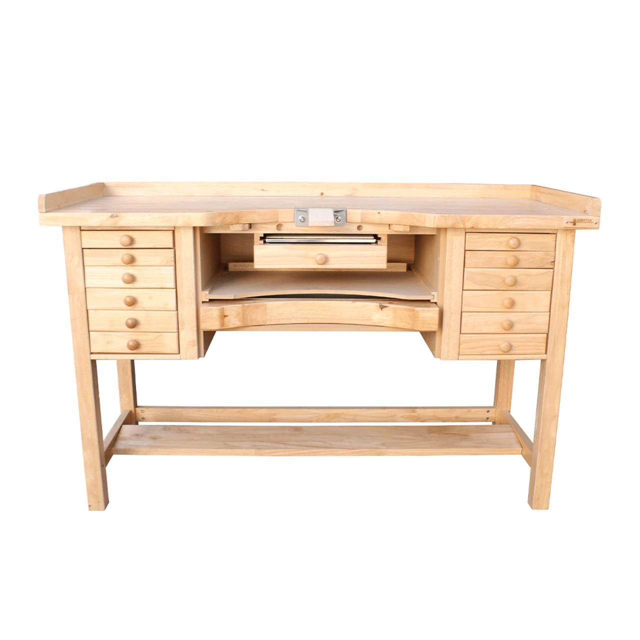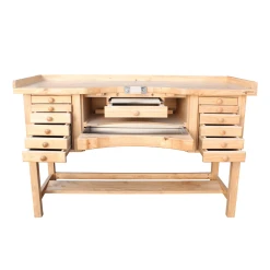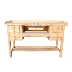 Durston Tools’ Superior Double Jeweller’s Workbench offers the same exceptional quality in a package that takes little more than 15 minutes to assemble. The extra thick worktop provides excellent support for your project while high railing around the top edges stops anything from slipping off. A pull out work surface provides even more flexibility and the bench includes two banks of six side drawers giving valuable storage. A centre drawer at the top is complemented by a large catch tray halfway down benefiting from a stainless steel metal liner. The unique solder tray means you’re ready to start work straight away, while pre-drilled holes for mandrels, a bench peg and useful arm supports and a footrest complete this superbly designed workbench, which carries all the hallmarks of Durston Tools’ attention to detail.