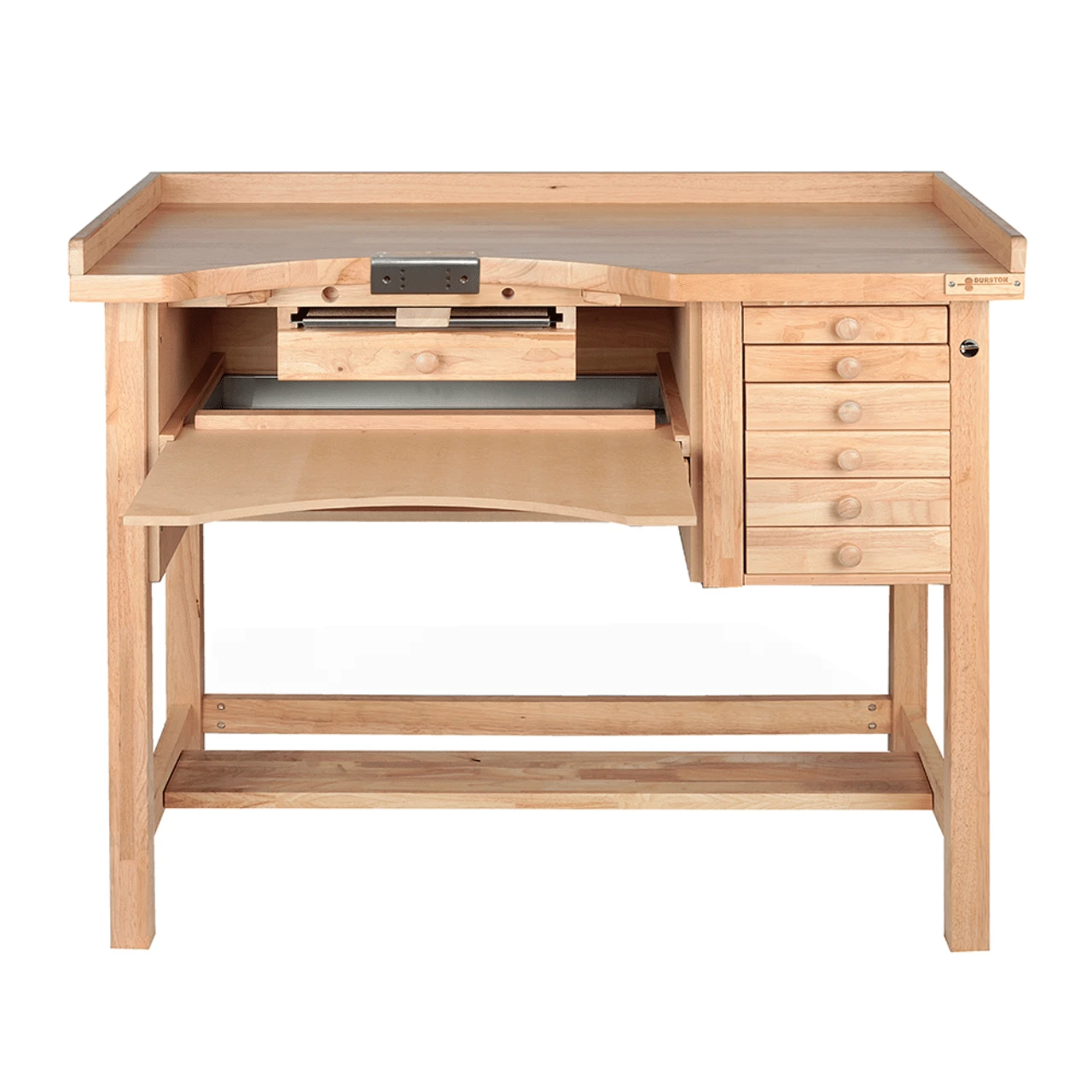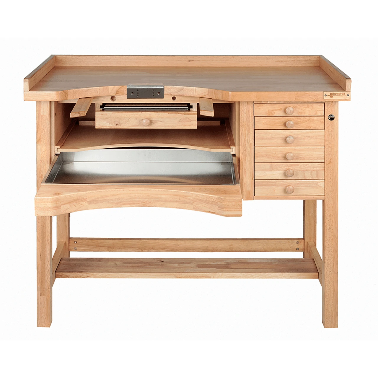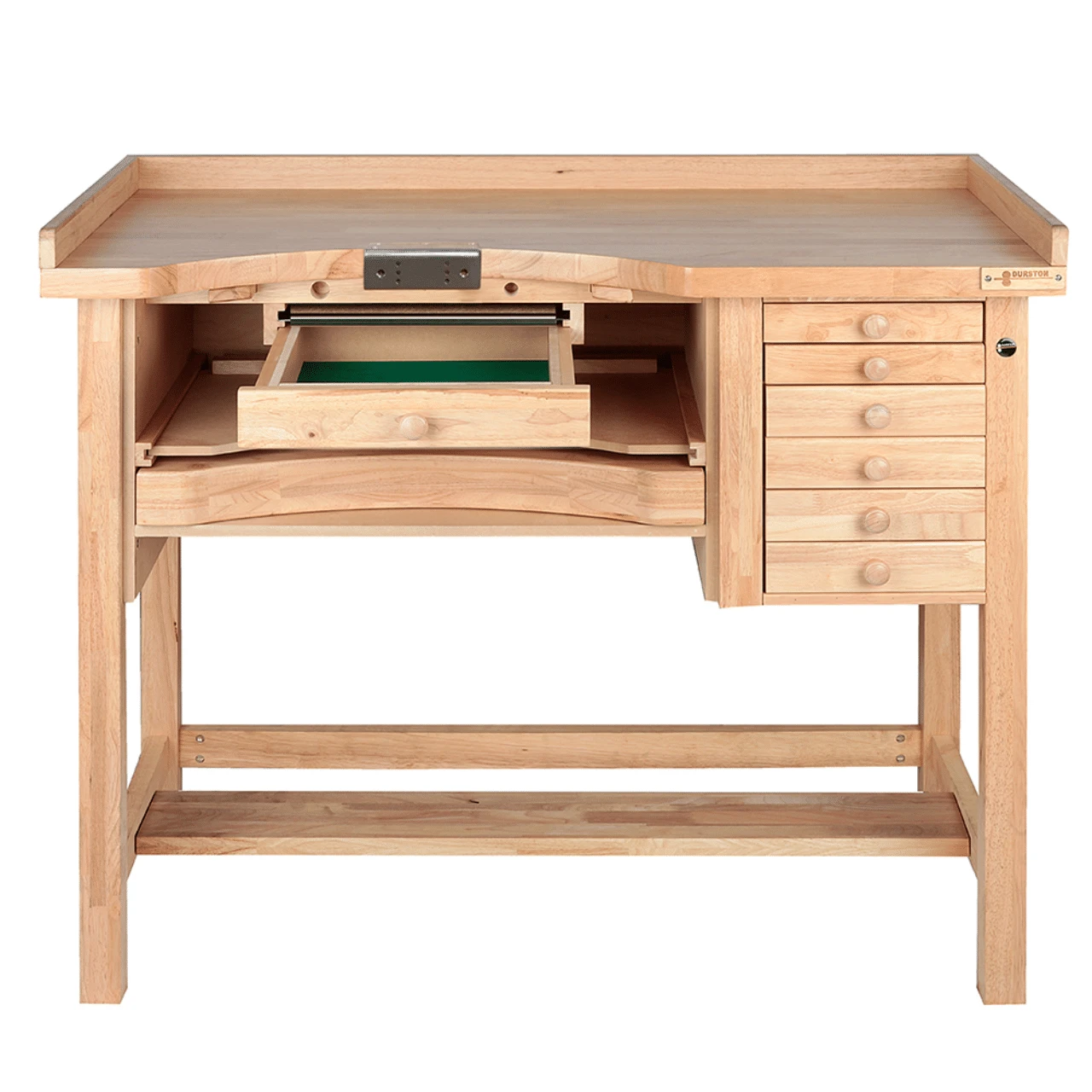 The unique solder tray means you’re ready to start work straight away, while pre-drilled holes for mandrels, a bench peg and useful arm supports and a footrest complete this superbly designed workbench, which carries all the hallmarks of Durston Tools’ attention to detail.