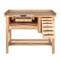 The extra thick worktop provides excellent support for your project while high railing around the top edges stops anything from slipping off. A pull out work surface provides even more flexibility and the bench includes six side drawers across two sizes giving valuable storage. A centre drawer at the top is complemented by a large catch tray halfway down benefiting from a stainless steel metal liner.