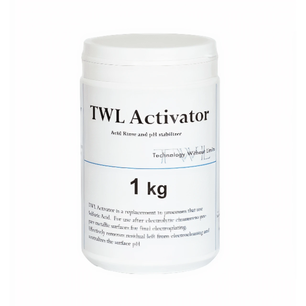 TWL Activator is a replacement in processes that use Sulphuric Acid. For use after electrolytic cleaners to prepare metallic surfaces for final electroplating. Effectively removes residue left from electro-cleaning and neutralises the surface pH.