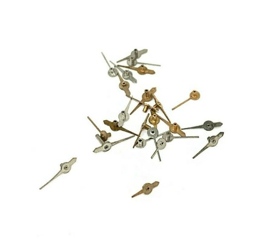 - An assortment of watch hands for the repair and decoration of watches variation of brass and chrome effect