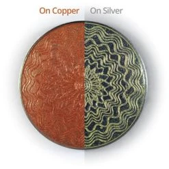 Our range of transparent Jewellery enamels are designed for use on tombac (gilding metal), copper, gold and silver. The guilloche pattern is a reproduction of a type of metal engraving that was popular at the turn of the 20th Century.