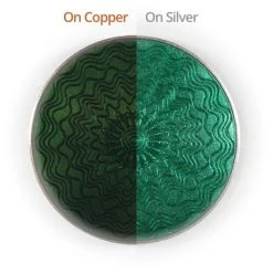 Our range of transparent Jewellery enamels are designed for use on tombac (gilding metal), copper, gold and silver. The guilloche pattern is a reproduction of a type of metal engraving that was popular at the turn of the 20th Century.