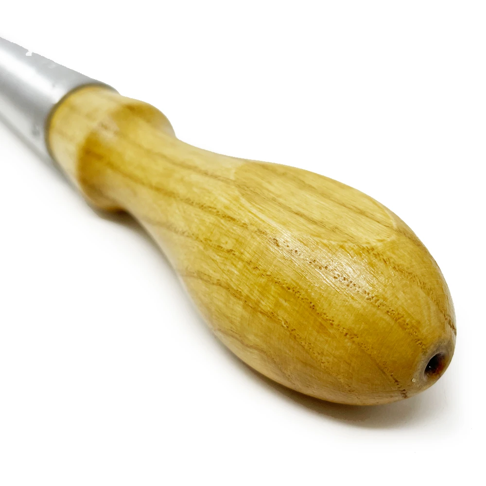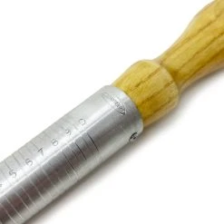 - A tapered light weight high grade aluminium ring stick, attached to a wooden handle shaped to your hand for comfort, with flats on either side, to stop rolling on work tops / counter tops.